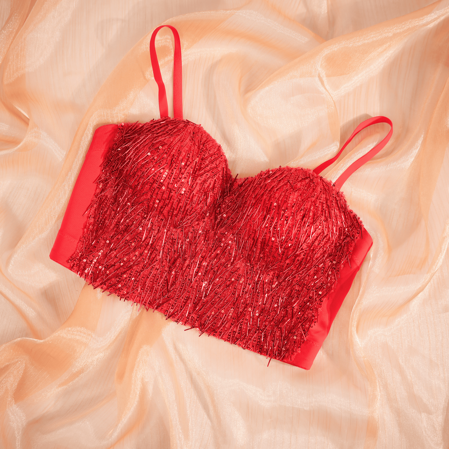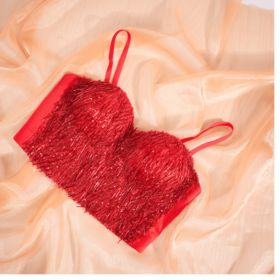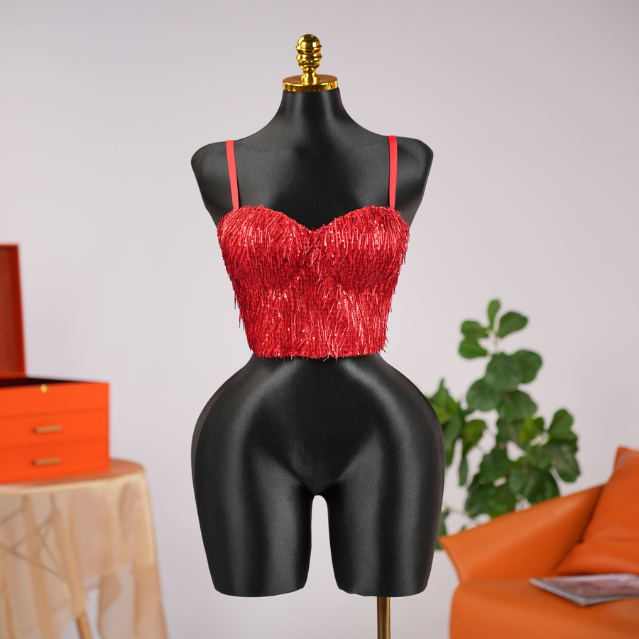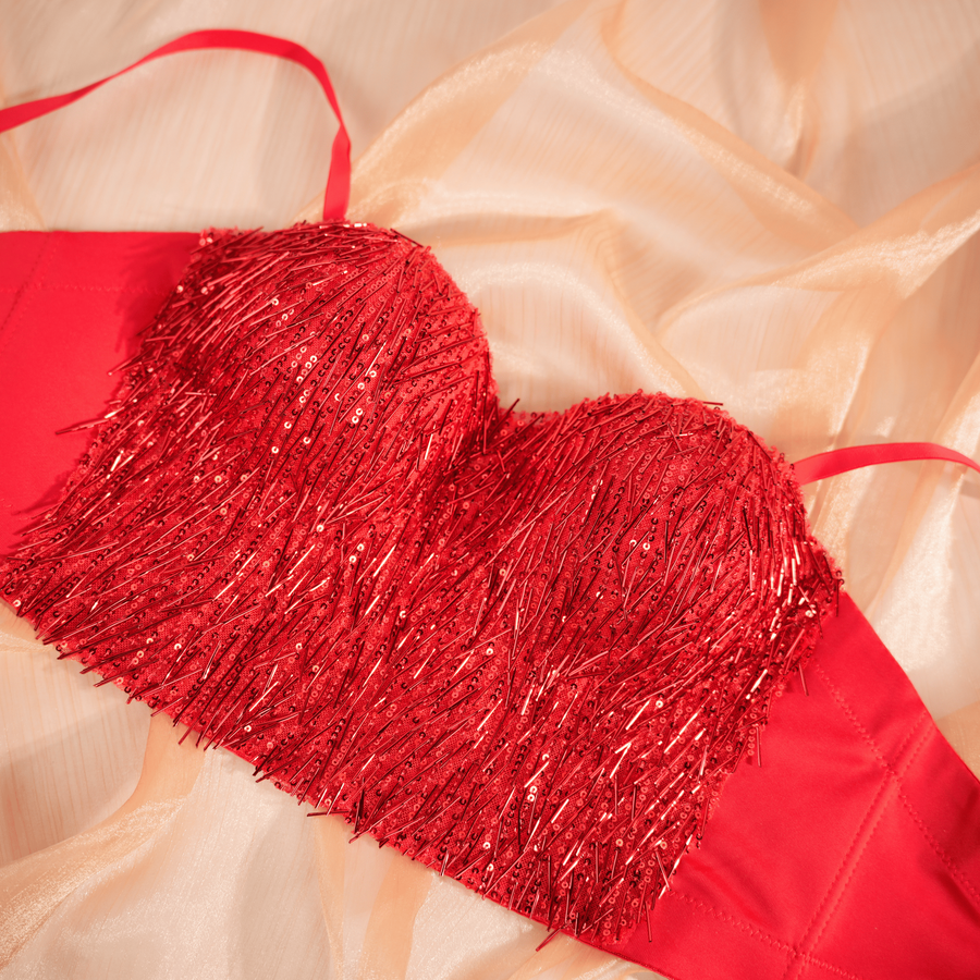 Highlight: Liquid sparkle texture that ignites movement and turns the body into pure statement.