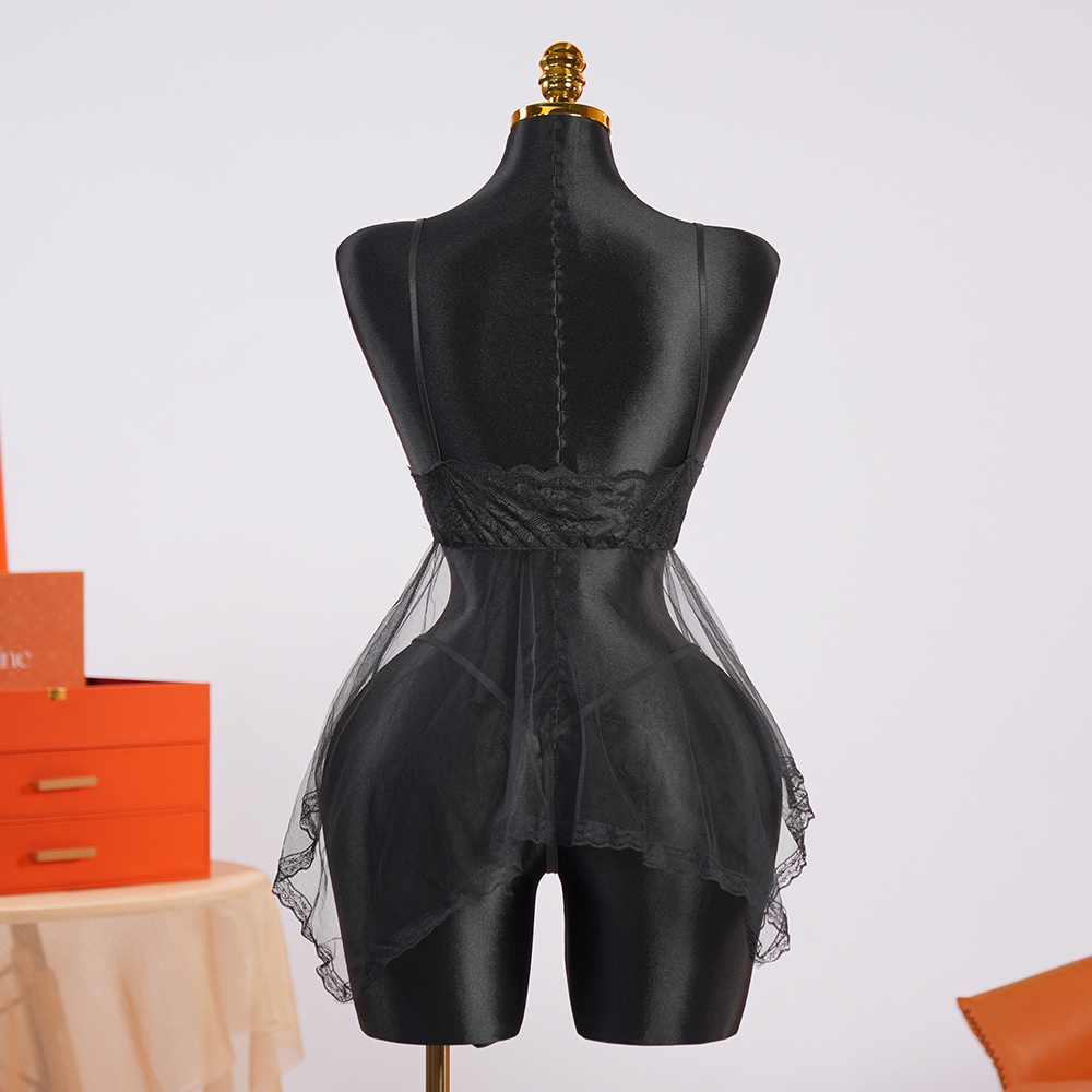Highlight: airy sheer layers with lace bust that flirt with movement and skin