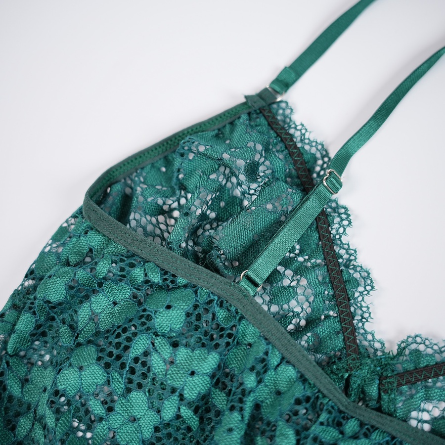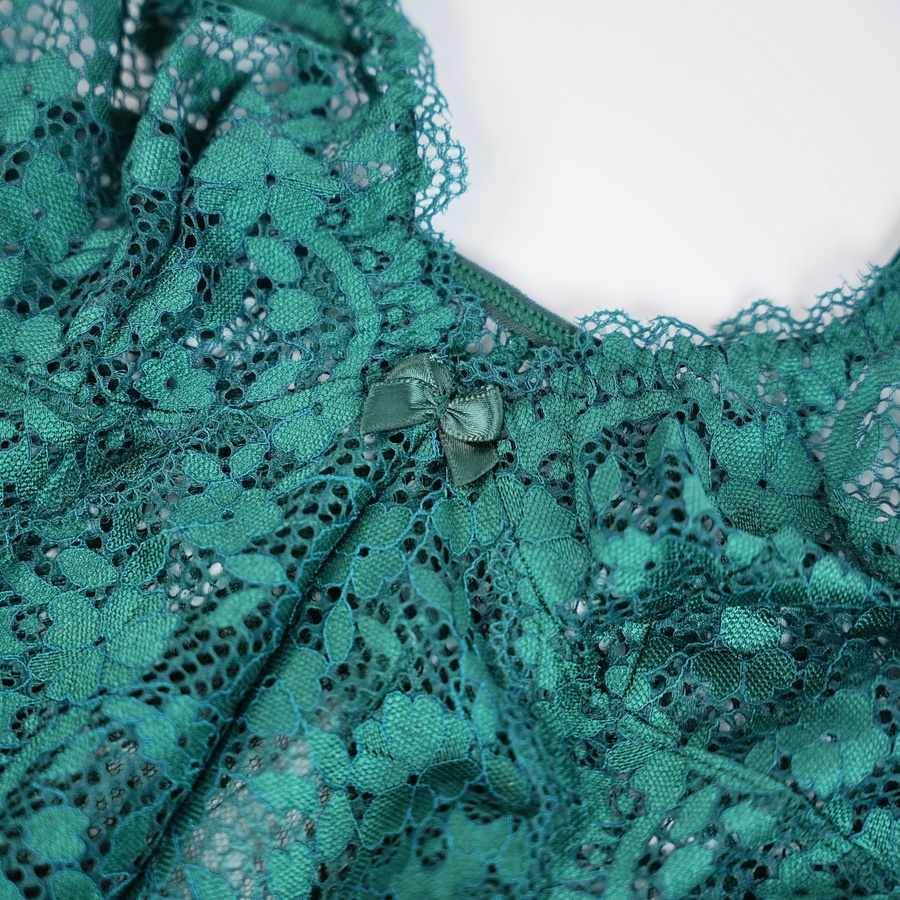 فستان لانجيري أنيق باللون الأخضر بتصميم على شكل قلب، مزين بالدانتيل الناعم مع حمالات قابلة للتعديل لراحة وأناقة أنثوية ساحرة.