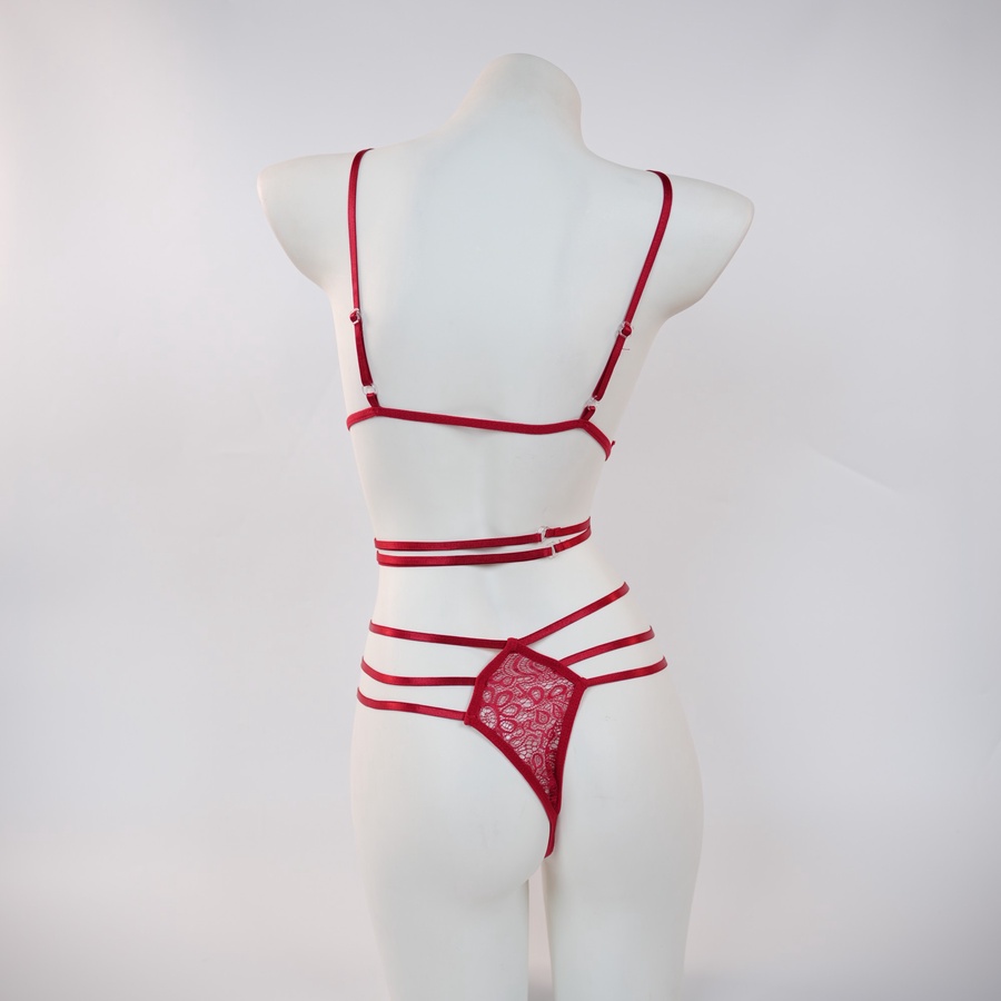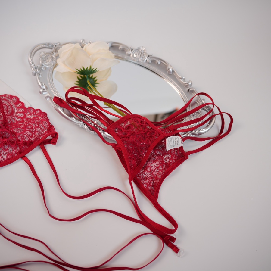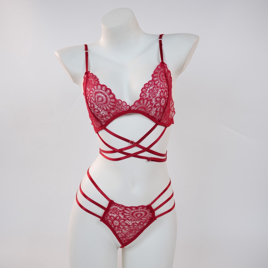 تصميم جريء ومثير من قطعتين يشبه المايوه، يتميز بحبال متعددة تمنحك لمسة عصرية وجذابة. اللون الأحمر النابض بالحياة يعكس الأنوثة والثقة، مع خامة مرنة ومريحة تبرز جمال القوام وتضفي مظهرًا ساحرًا مثاليًا للأمسيات الخاصة.