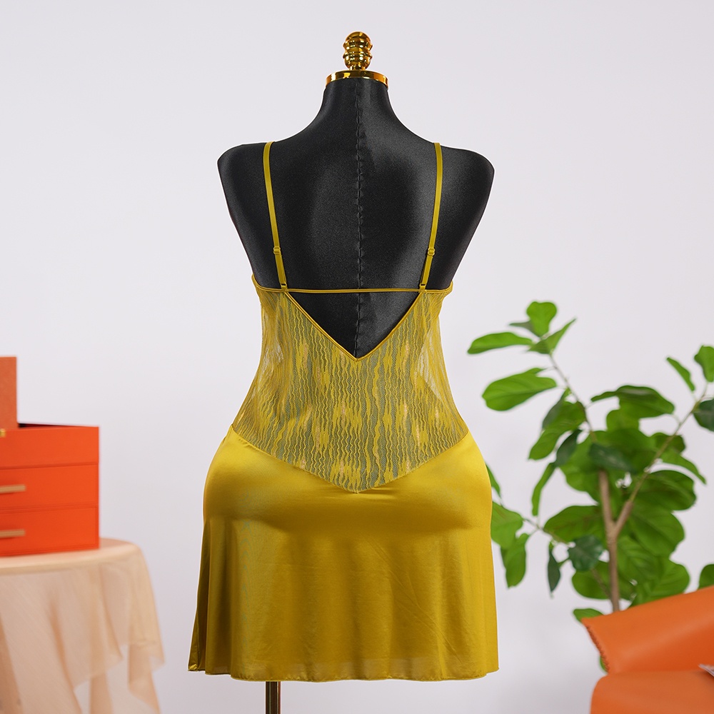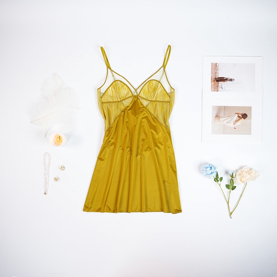 Highlight: fluid satin slip with sheer lace accents that glow against the skin.