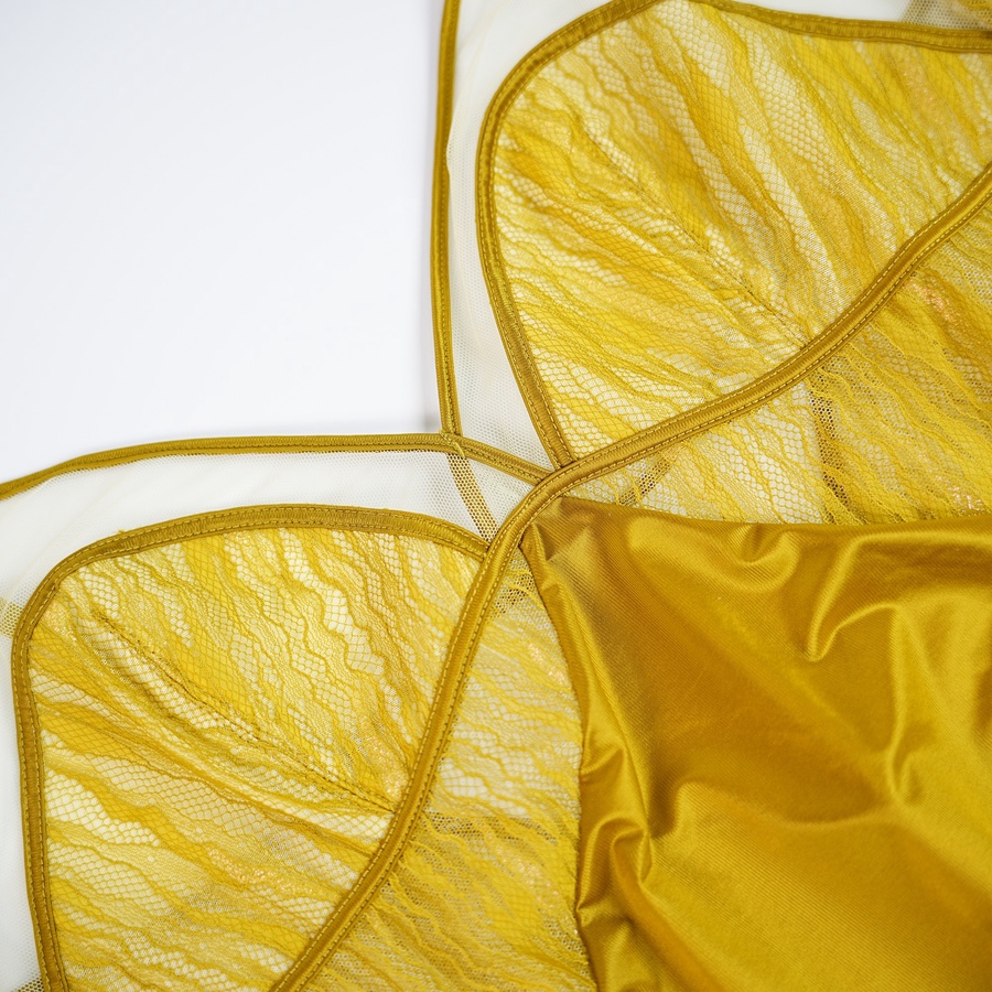 Material: Soft sheer mesh with delicate floral lace and a gentle stretch.