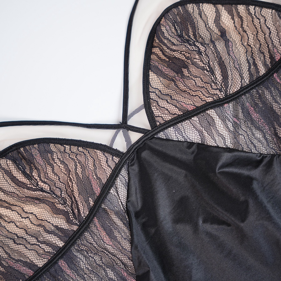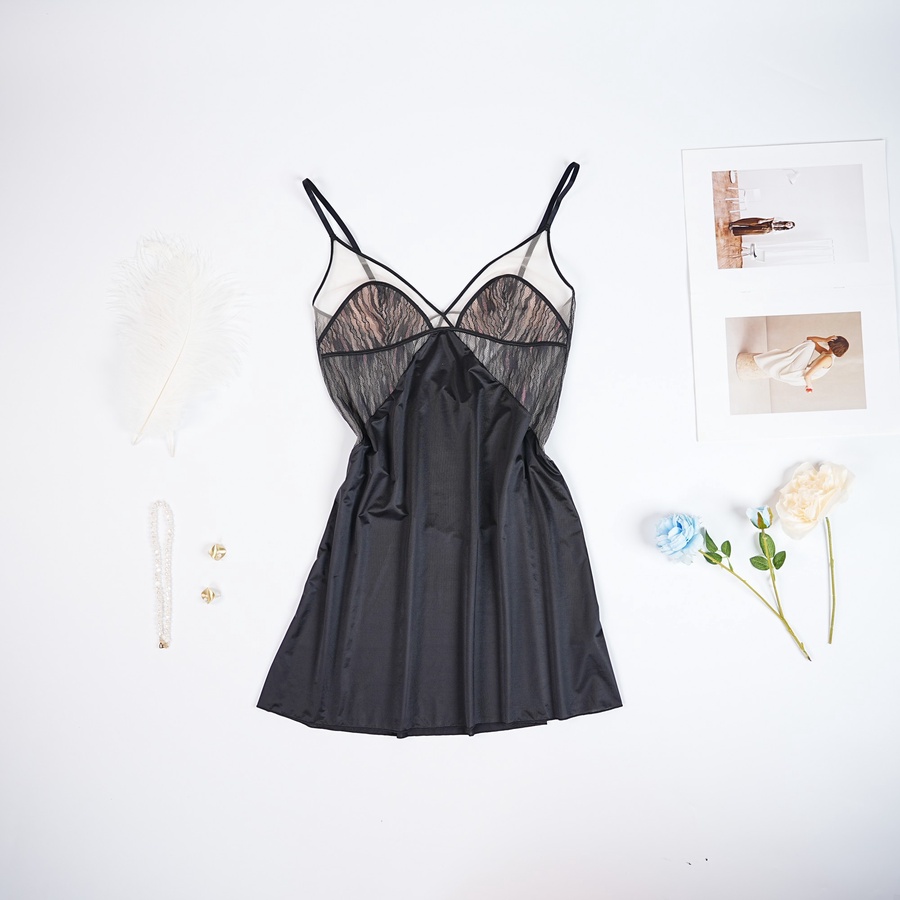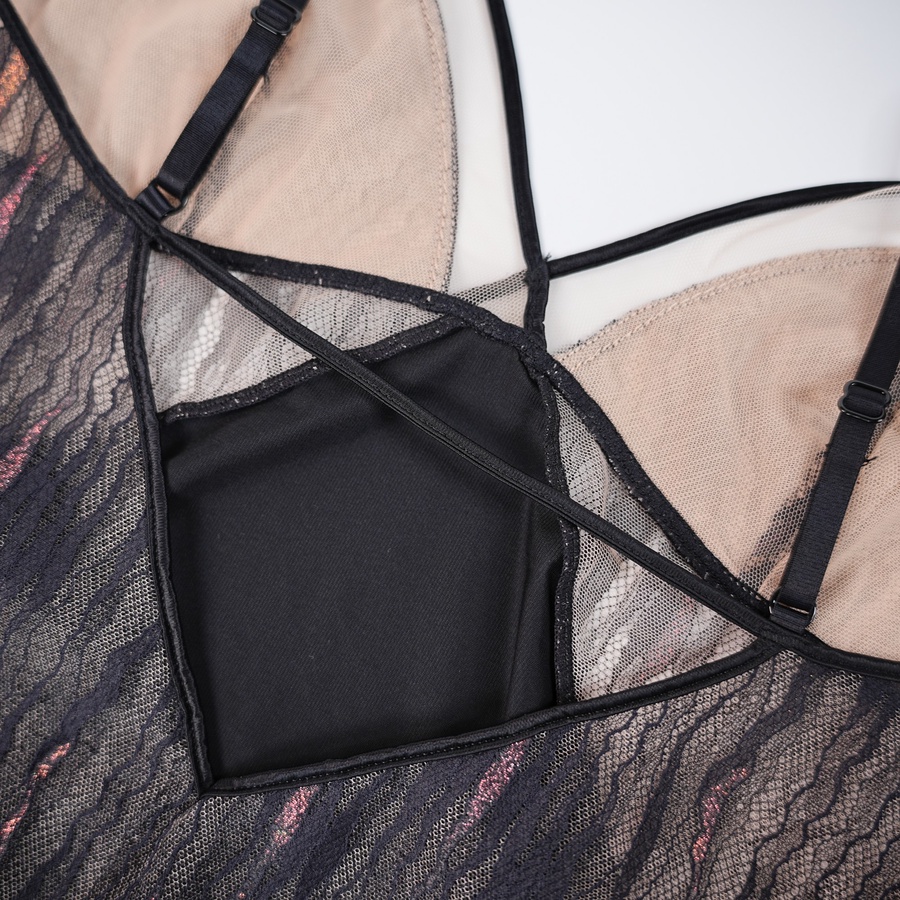 فستان لانجري أسود بتفاصيل برتقالية لافتة عند الصدر. مقاس واحد يناسب الجميع، مع حمالات قابلة للتعديل لإطلالة مريحة وأنيقة.