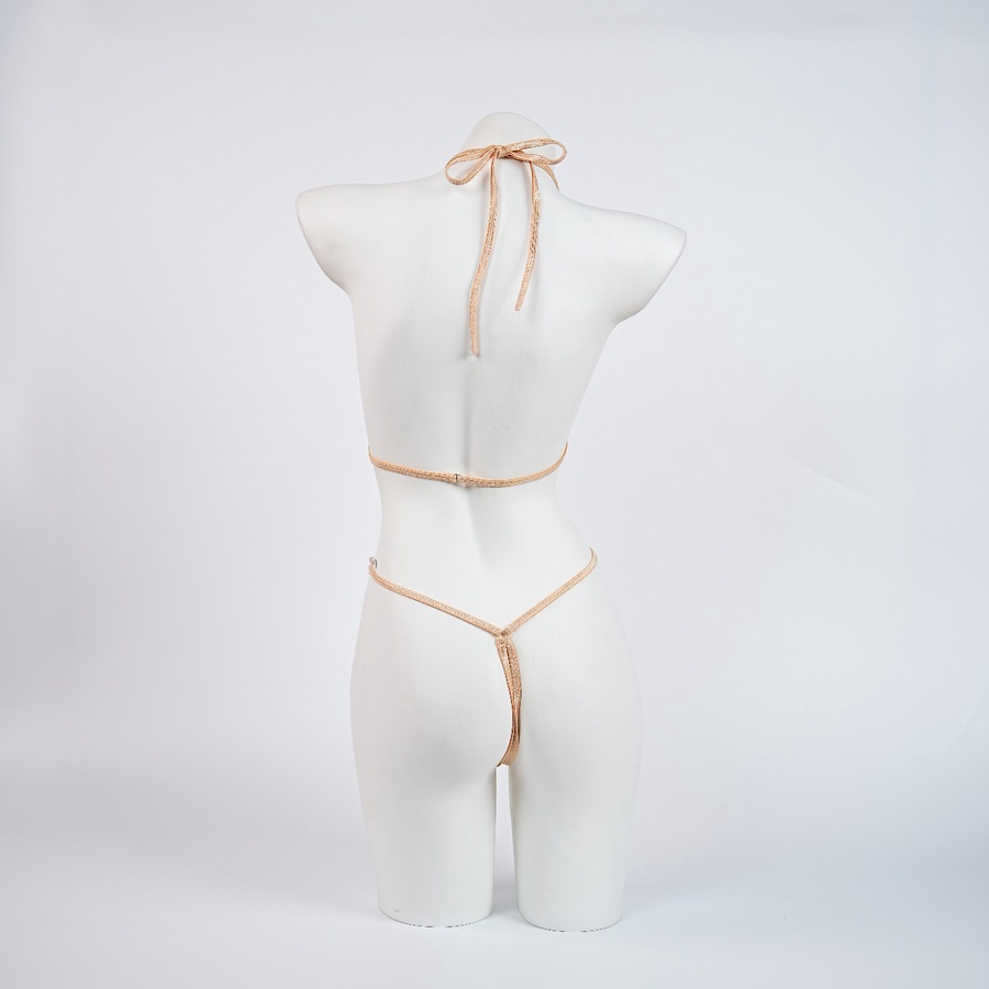 لانجيري كاش مايوه من قطعة واحدة باللون البني ، مزين بحزام أصفر أنيق حول الرقبة، يمنحك مزيج مثالي من الأناقة والجرأة.