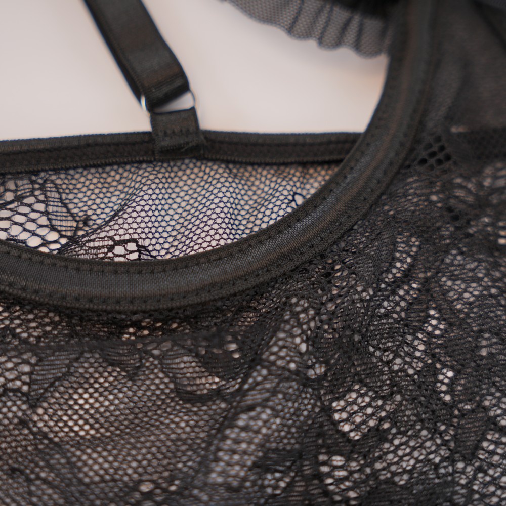 Material: Soft sheer mesh with delicate floral lace and a gentle stretch.