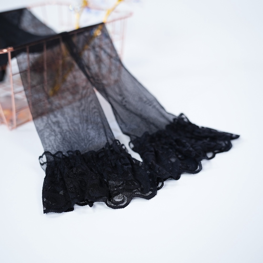 Material: Soft sheer mesh with delicate floral lace and a gentle stretch.