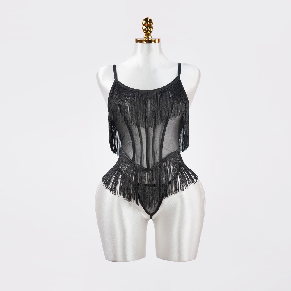 Bold, sheer, fringed. An all-black shaping set designed for pure temptation.