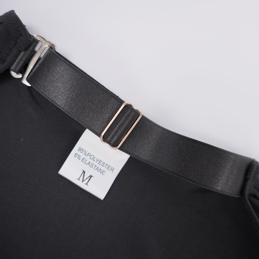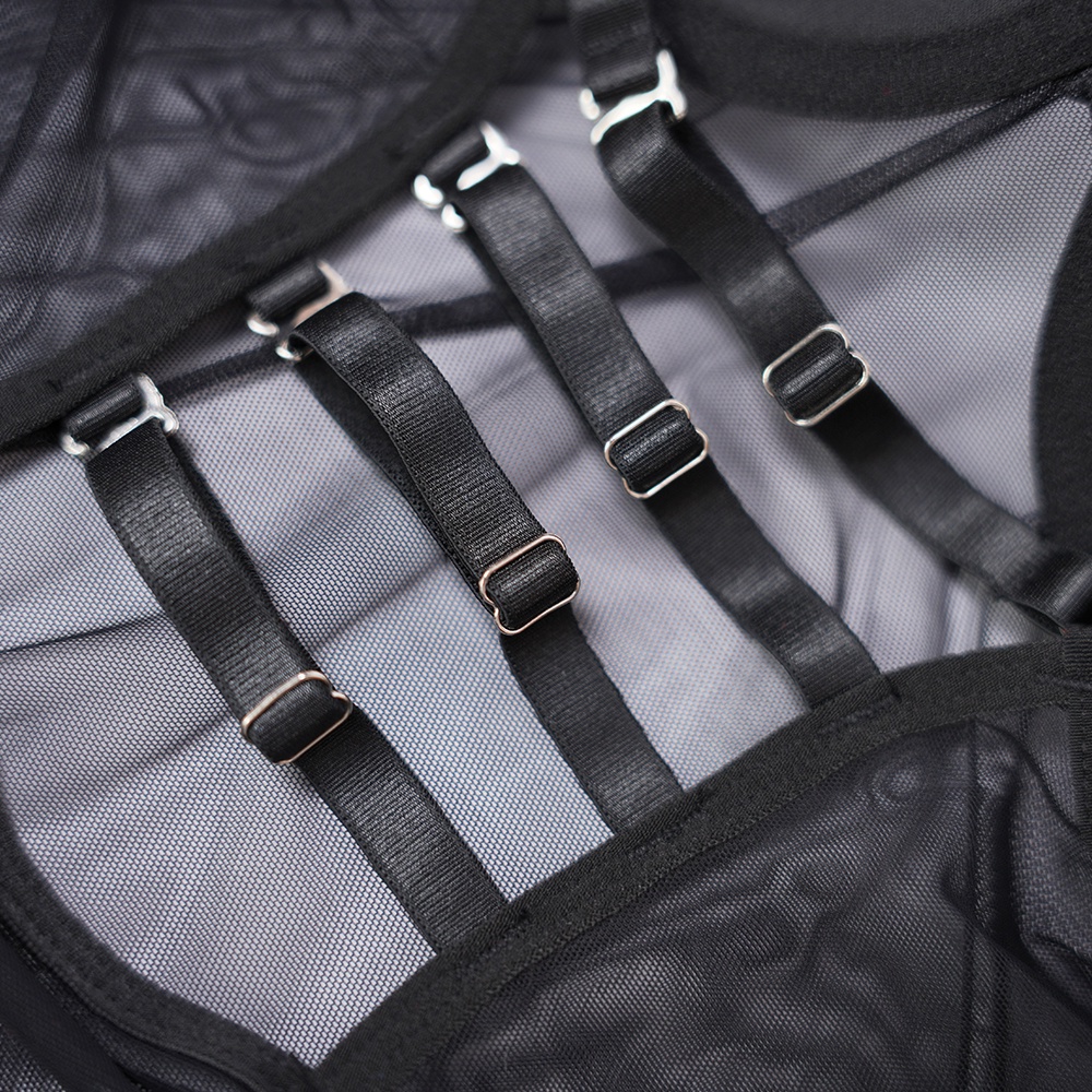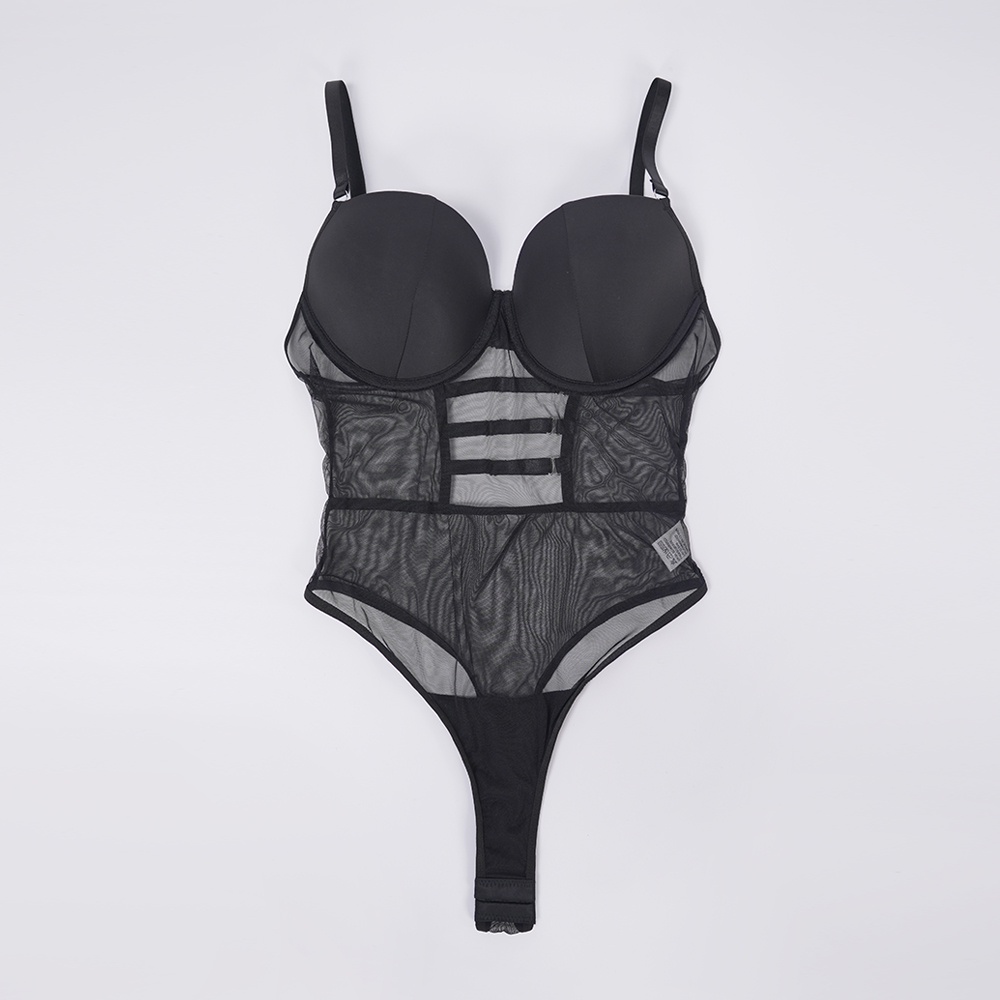 Step into black allure. This bodysuit-and-dress set defines elegant seduction.