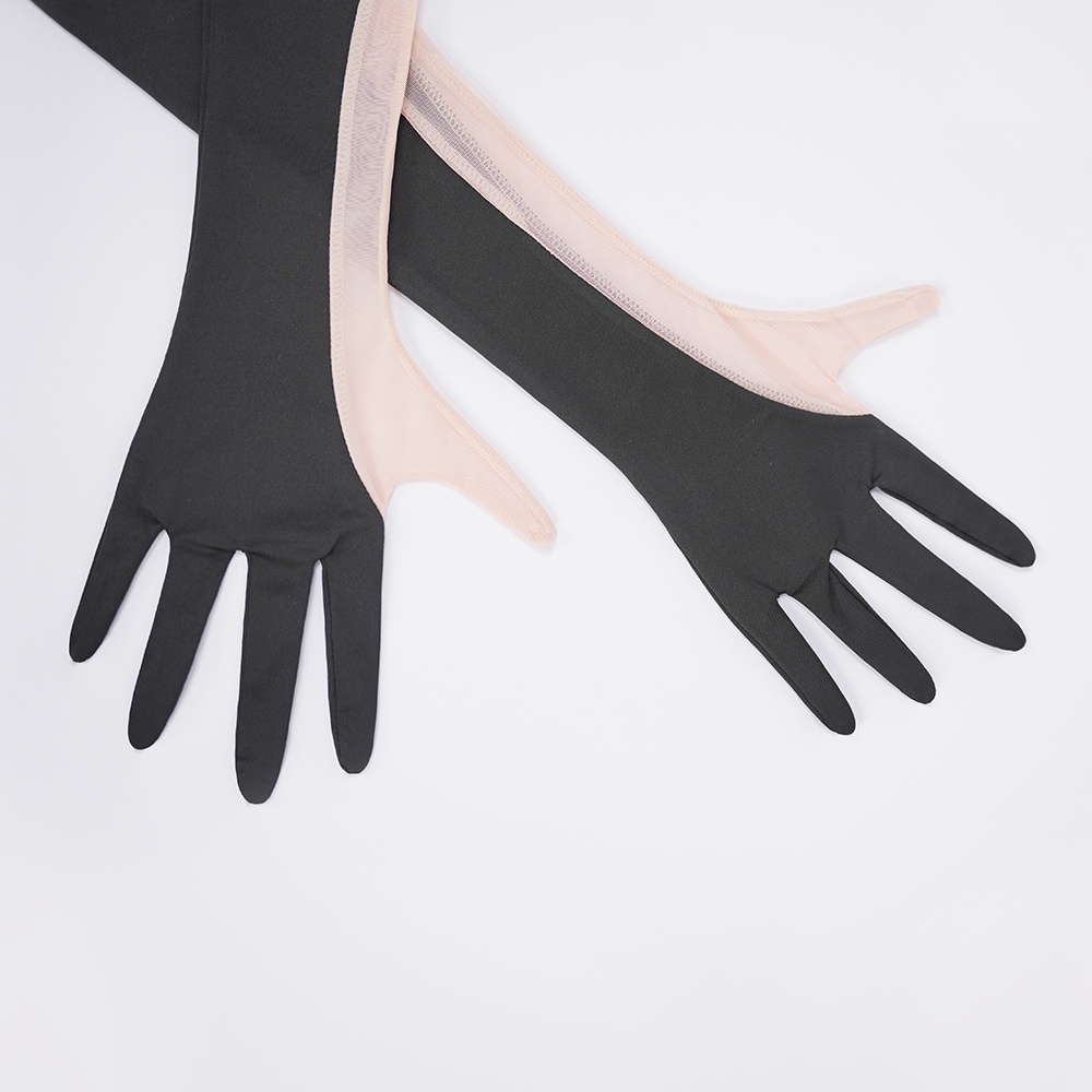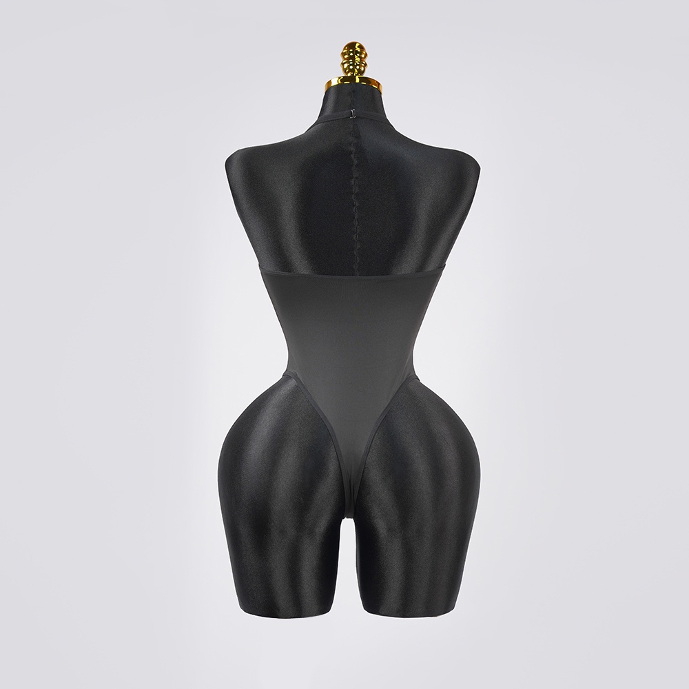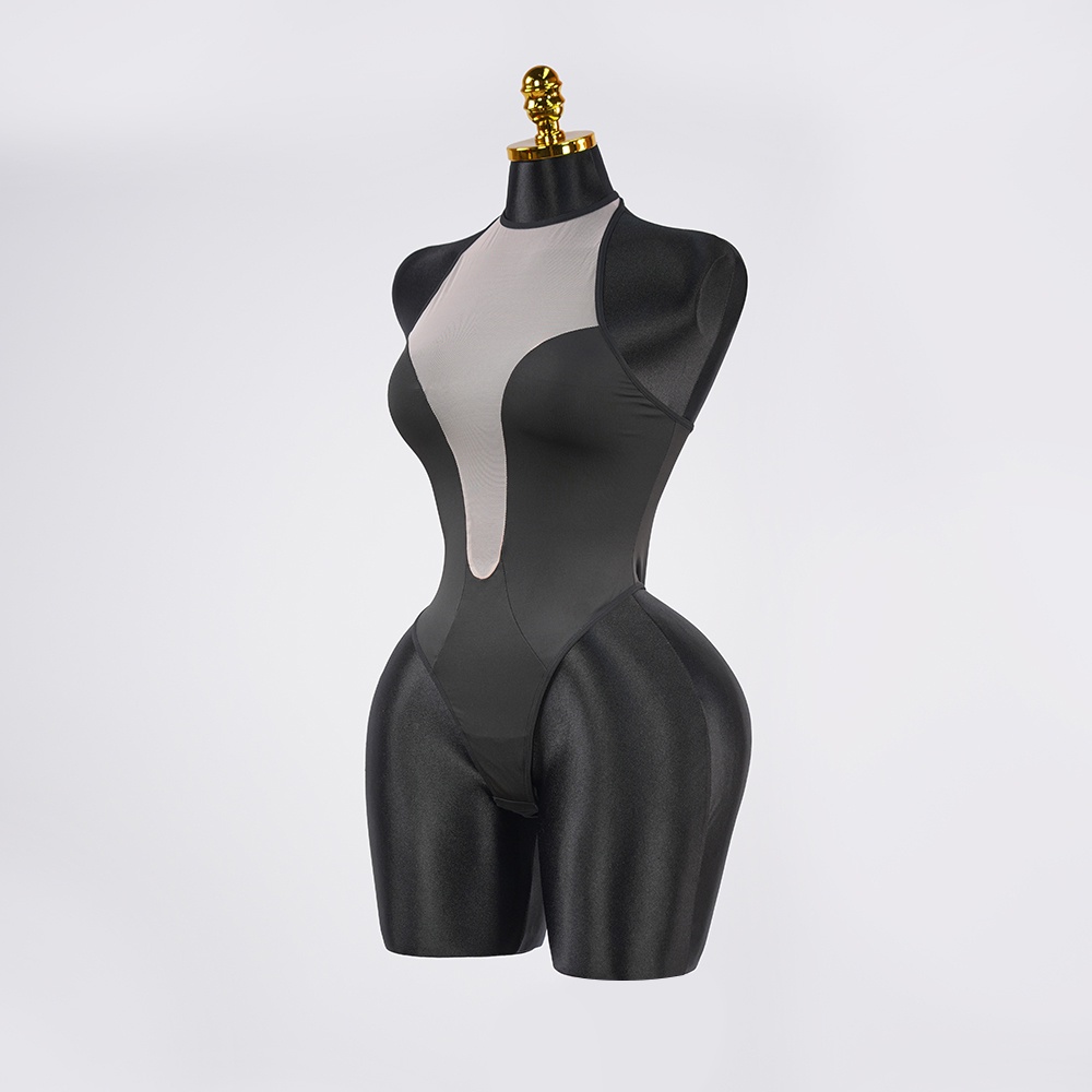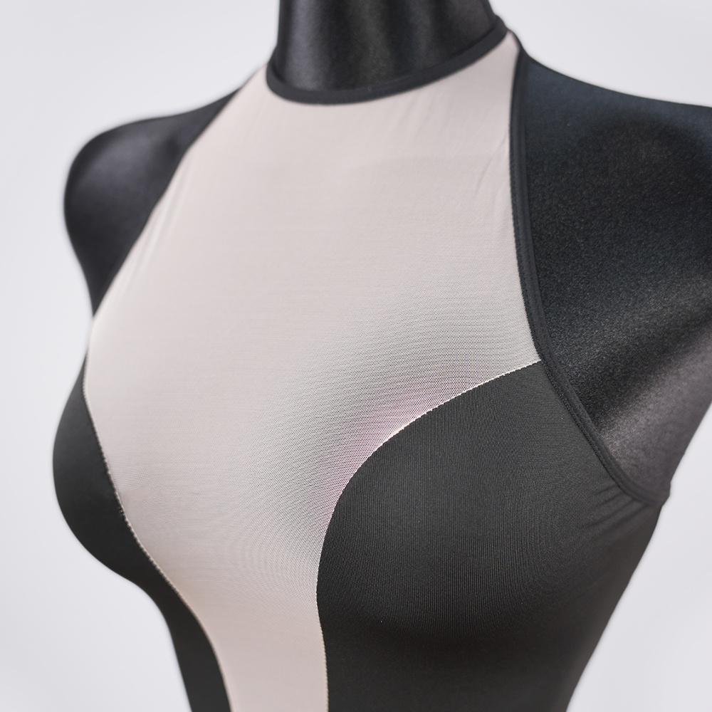 Feel the allure in silky-smooth, black-and-white. This statement-making bodysuit comes complete with gloves.