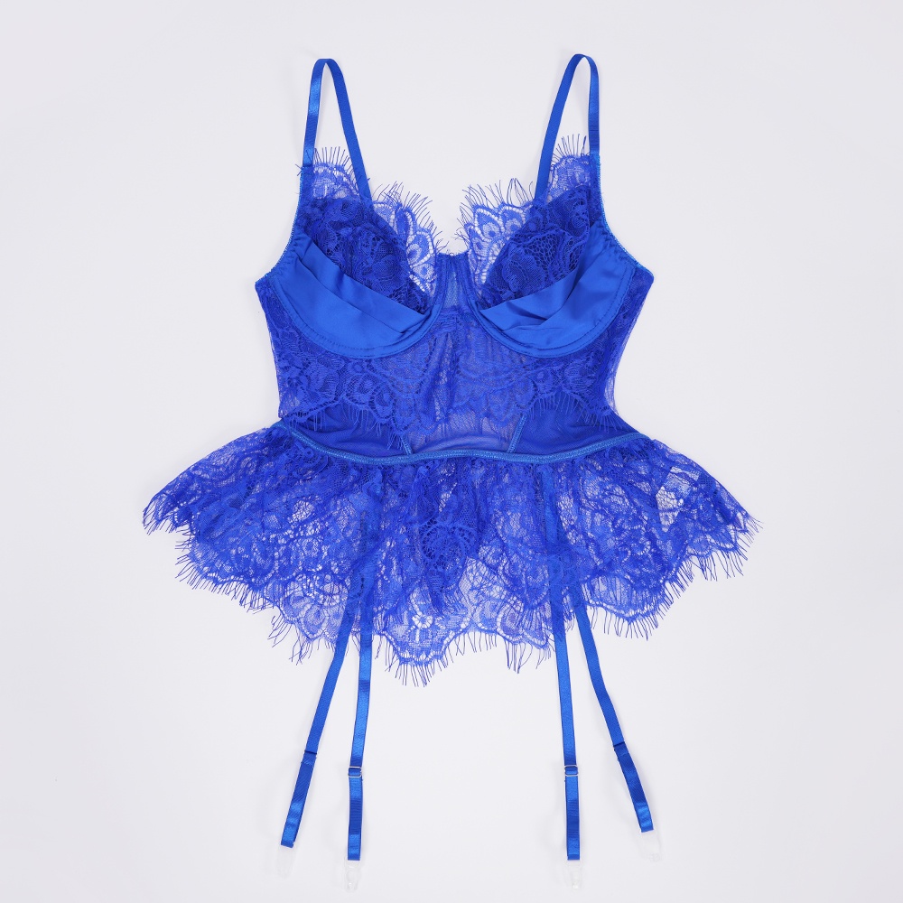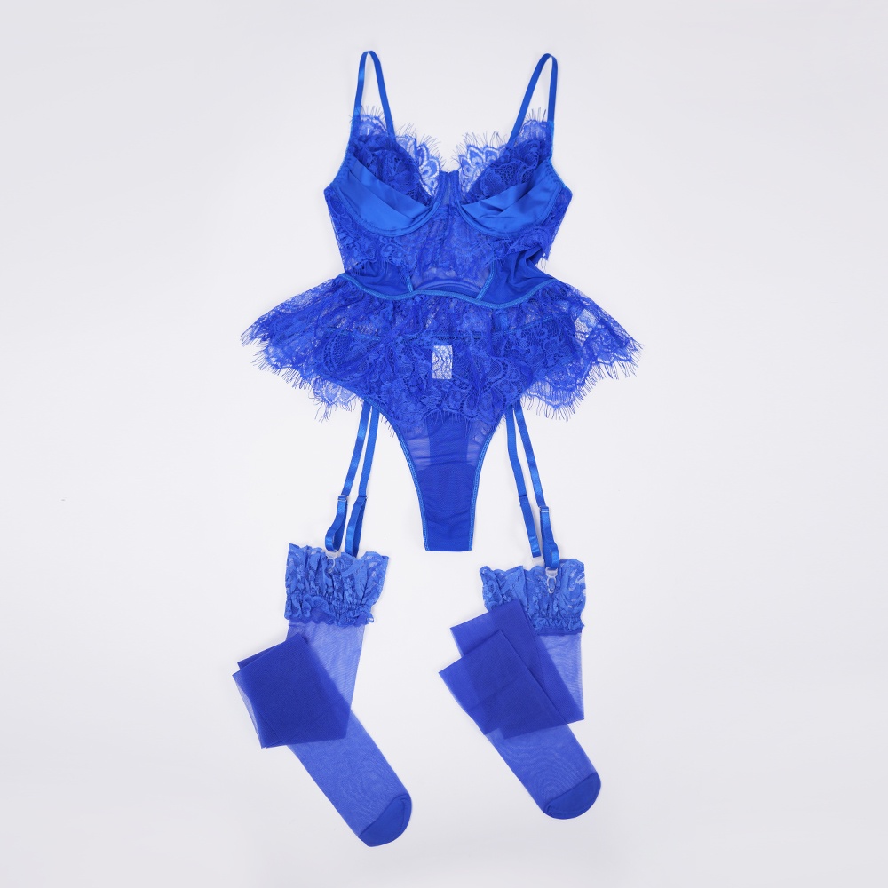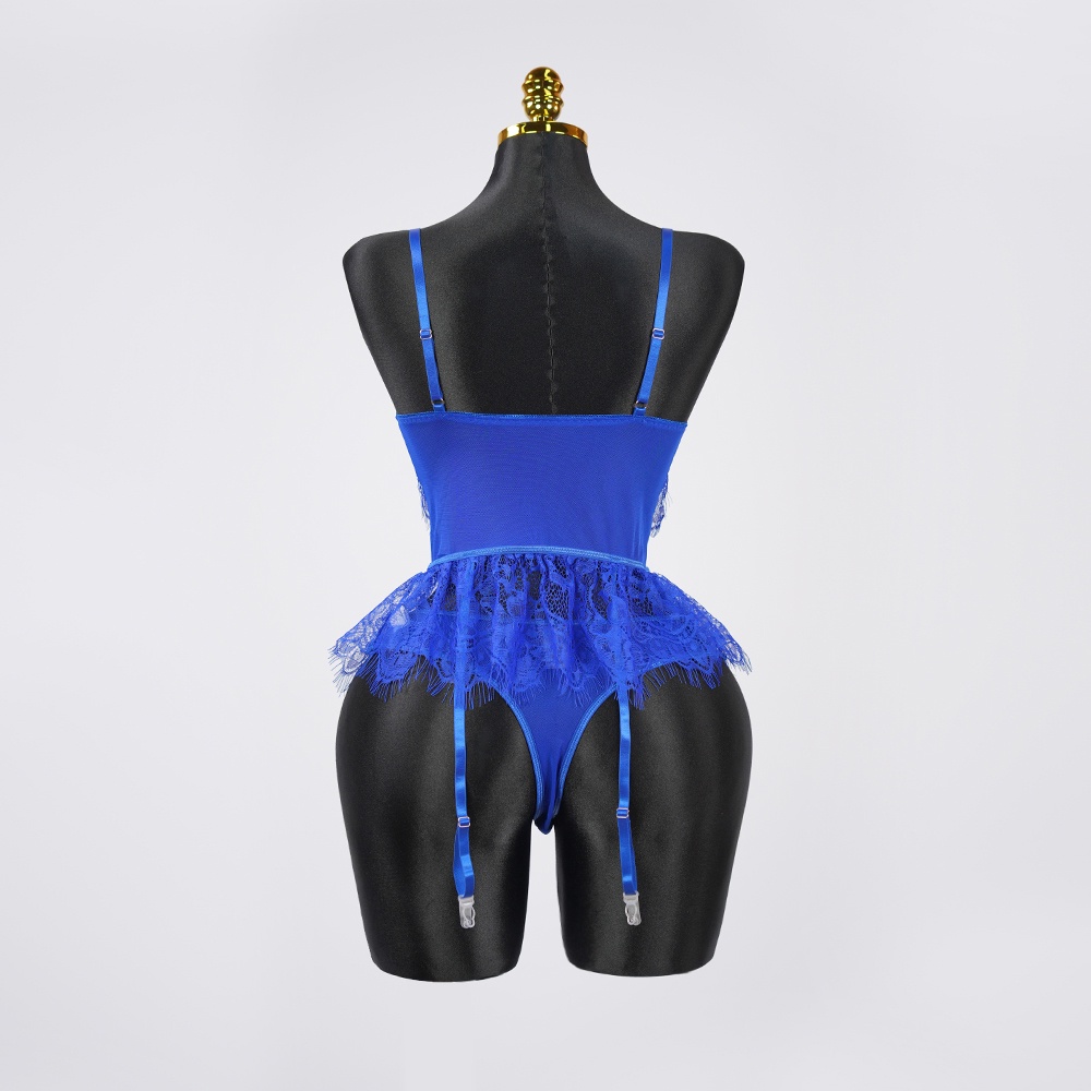 Blue Lace Floral Embroidered Bodysuit