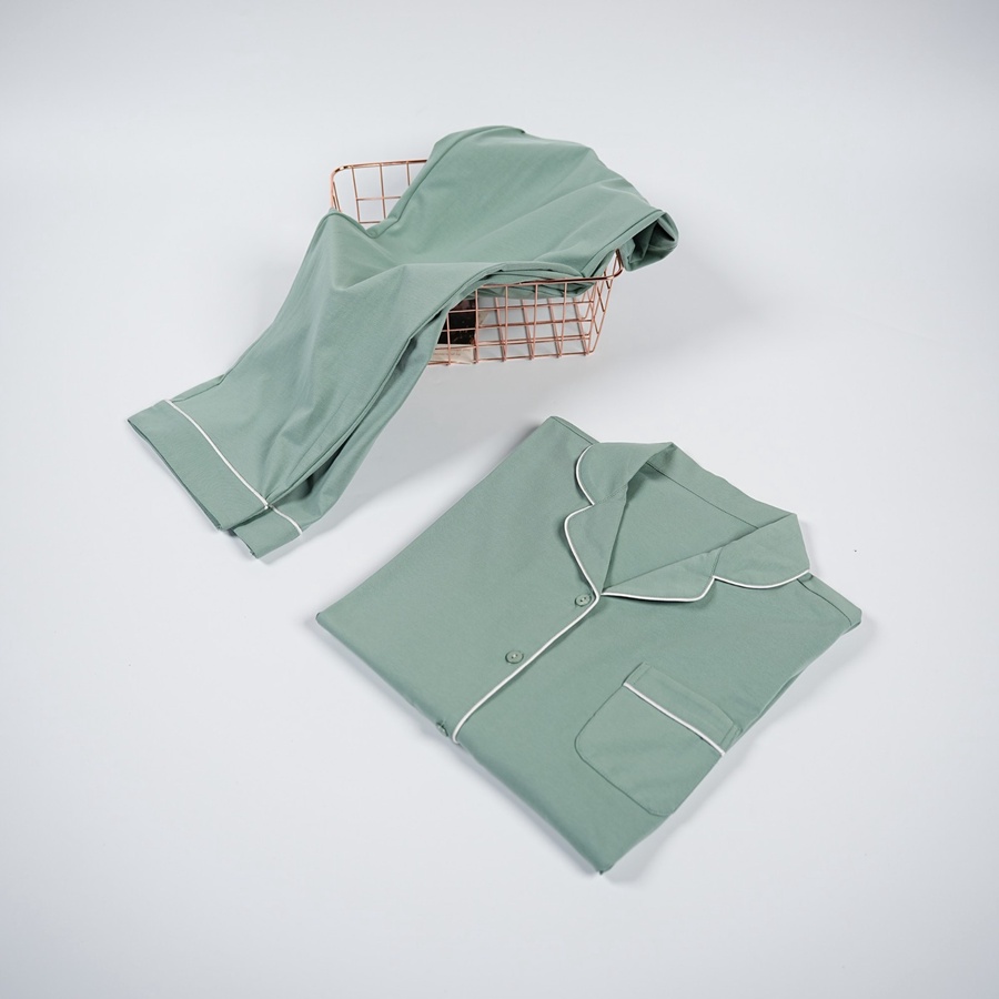 سر جمال البيجاما دي في خامتها مصنوعة من قطن فائق النعومة ملمسه على الجسم كأنه حضن دافي خامة طرية وبتتنفس عشان تضمني نوم مريح وهادي طول الليل من غير أي إحساس بالحر أو الضيق.