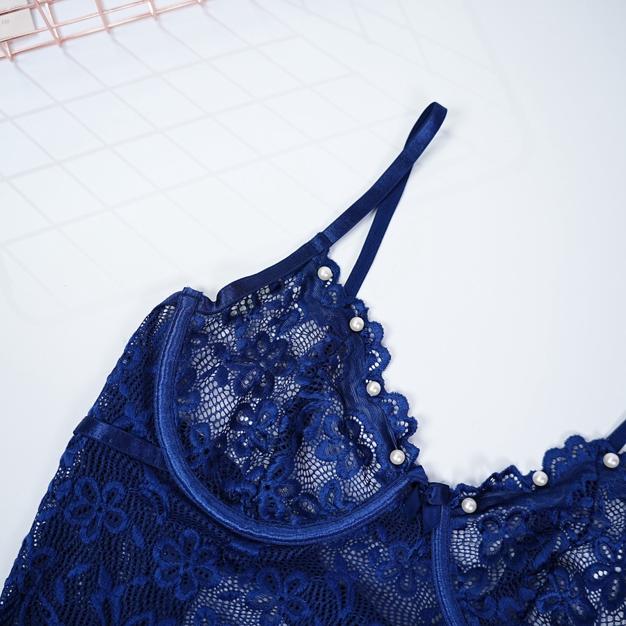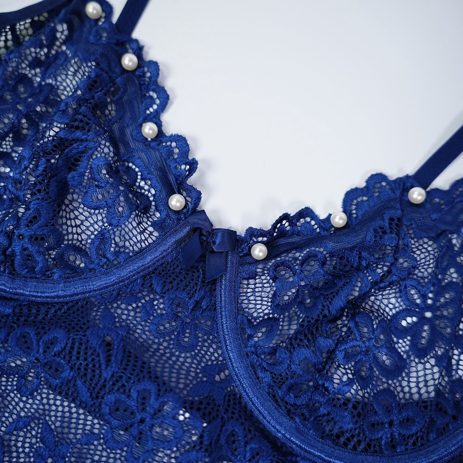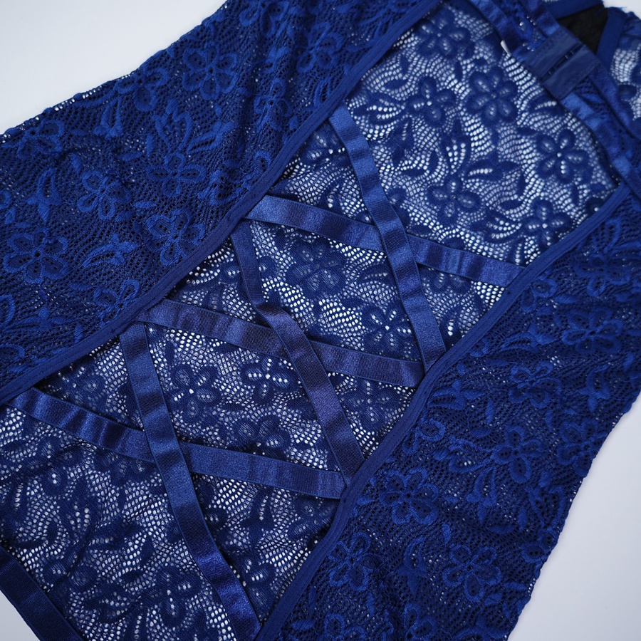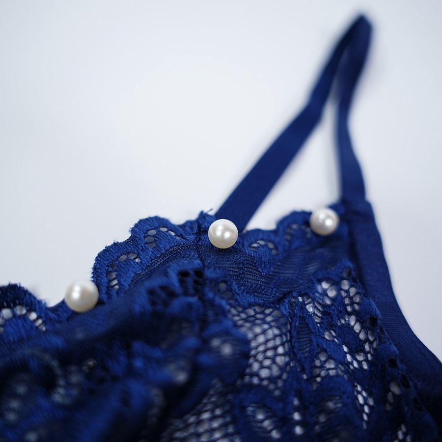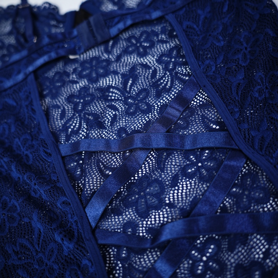 لونه الكحلي الغامق ده ملك الألوان بيدي فخامة وجاذبية مفيش زيها والتصميم كله من الدانتيل الناعم اللي بيخليكي تحسي براحة ونعومة على جسمك.