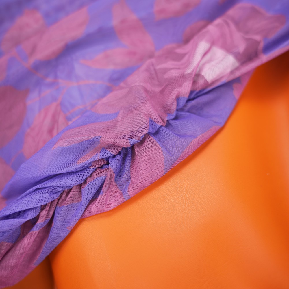 يُنصح بالغسيل اليدوي: يُغسل برفق بالماء البارد باستخدام منظف خفيف، مع الحرص على عدم نقعه أو فركه بعنف للحفاظ على نقشة الأزهار الرقيقة وجودة القماش الشفاف.