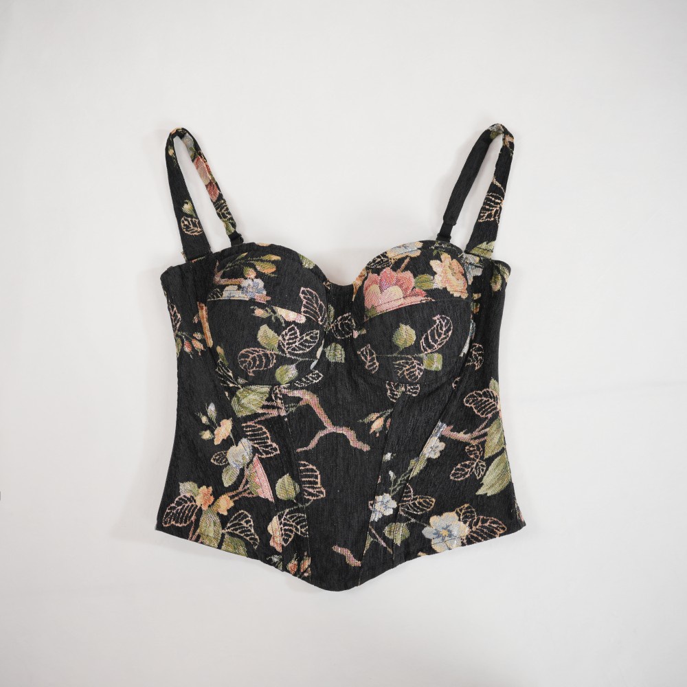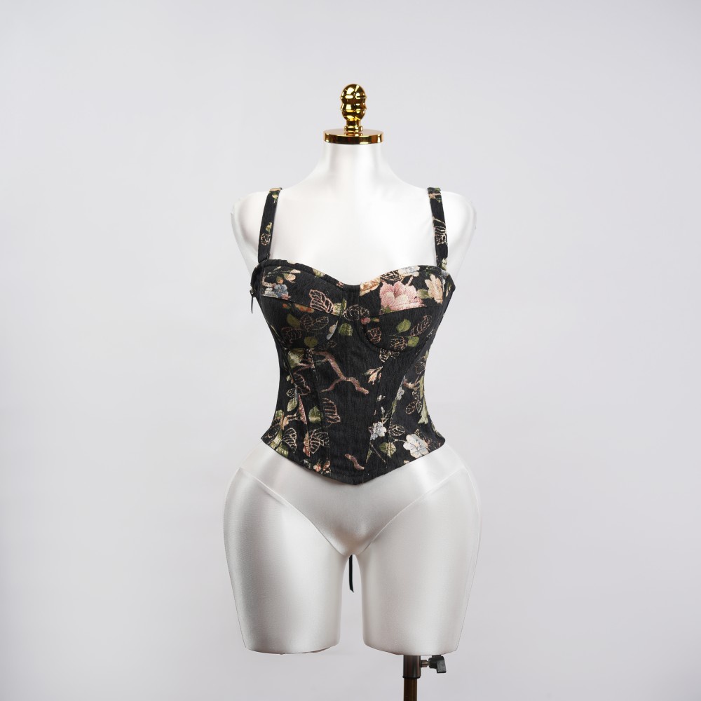 Highlight: Precision seams and lightweight boning sculpt the bust and cinch the waist for an hourglass silhouette.