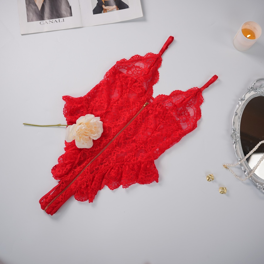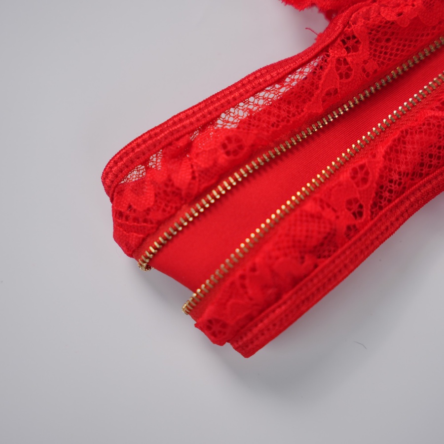 كاش مايوه أنيق باللون الأحمر الجذاب، مزود بسحّاب أمامي باللون الذهبي يضفي لمسة فاخرة وملفتة. تصميم عملي وعصري يمنحك إطلالة جريئة وأنثوية مثالية .