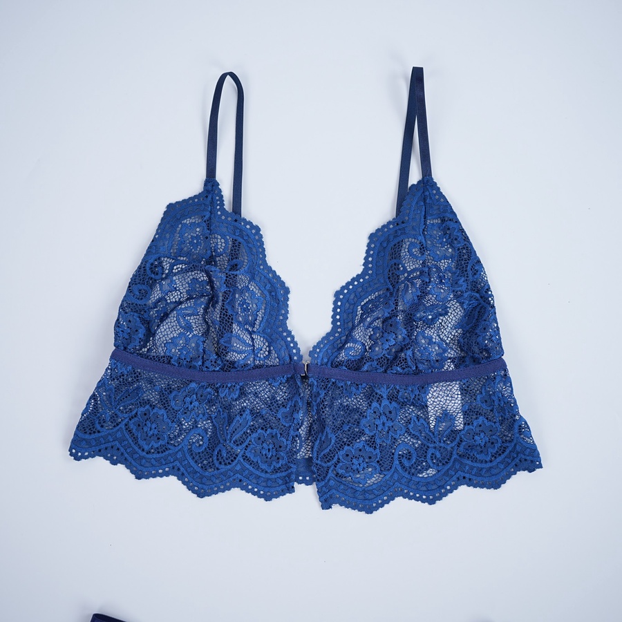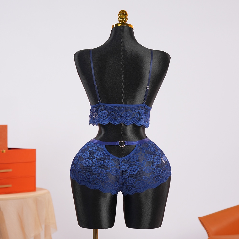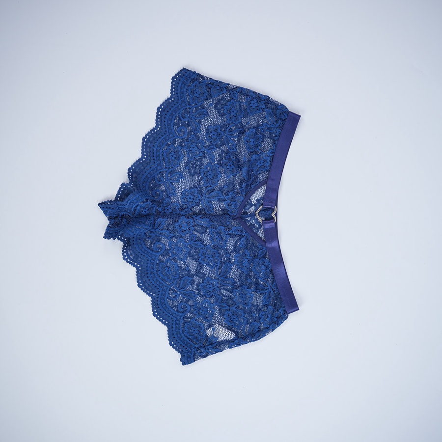 تقدم لك مجموعتنا الجديدة من اللانجيري الدانتيل الأزرق تجربة لا تُنسى من الجمال والراحة. هذا التصميم الفريد يتكون من حمالة صدر وسروال بخصر عالٍ، مما يجعله الخيار المثالي لكل امرأة تبحث عن الأناقة والجاذبية.