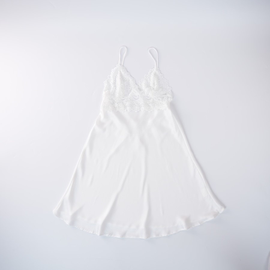 الأنوثة الطاغية (الساتان القصير والدانتيل): بيبي دول ساتان أبيض قصير، مع دانتيل مغري على الصدر وتفاصيل زي الرباط اللي بيتظبط عشان تطلعي بأجمل لوك أنثوي.