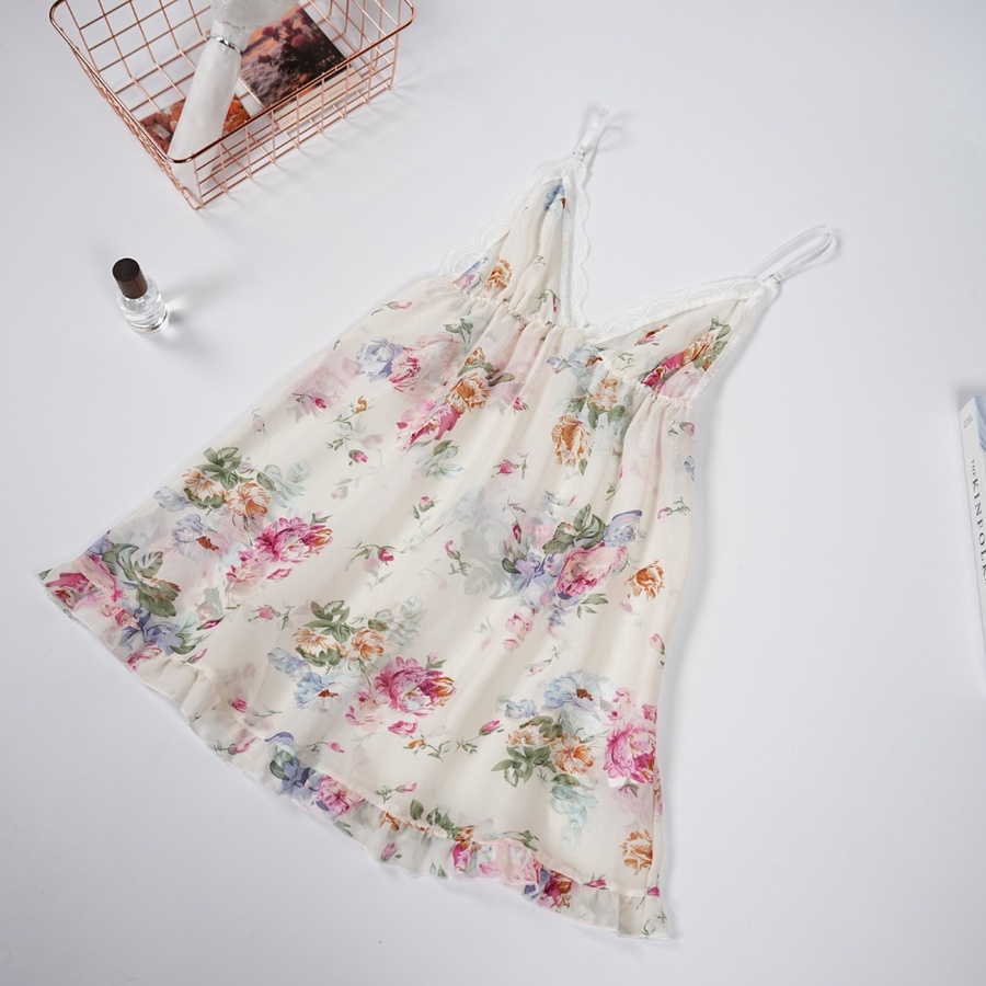 الرقة الهادية (بيبي دول الشيفون المورد): قميص نوم شيفون خفيف ومريح أوي، بورد وألوان هادية عشان تحسي بالانتعاش والهدوء. راحة مفيش زيها لأوقات البيت الهادية.