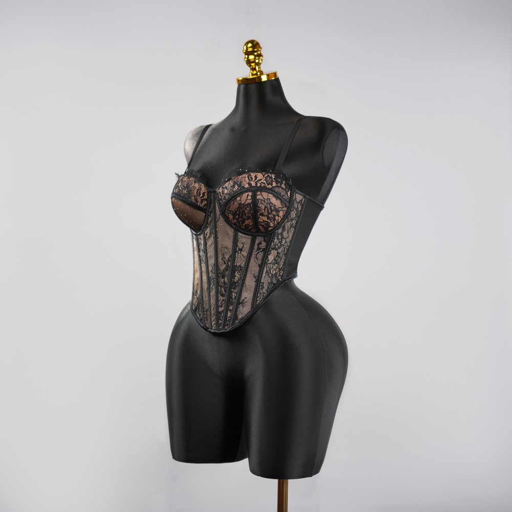 Highlight: Precision seams and lightweight boning sculpt the bust and cinch the waist for an hourglass silhouette.