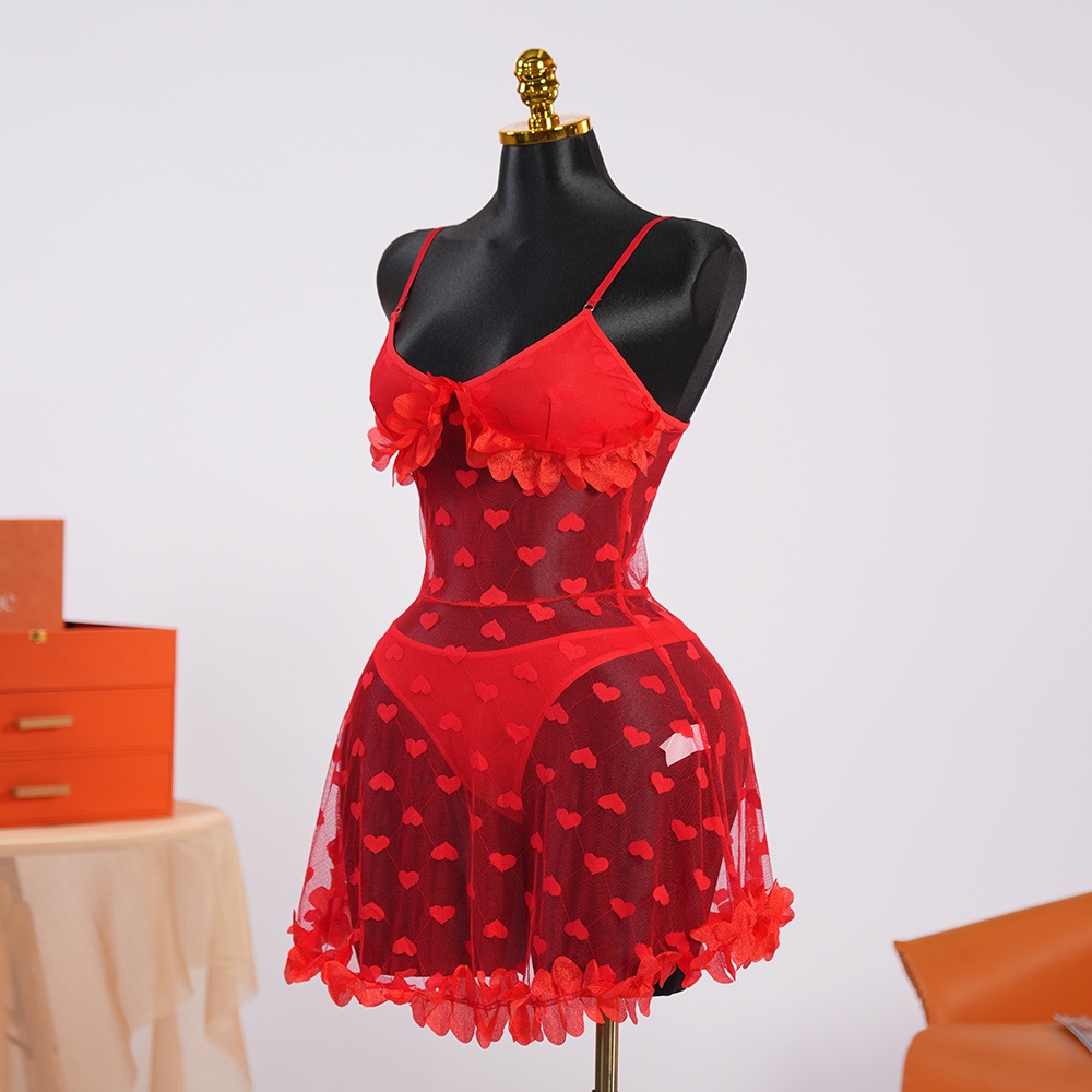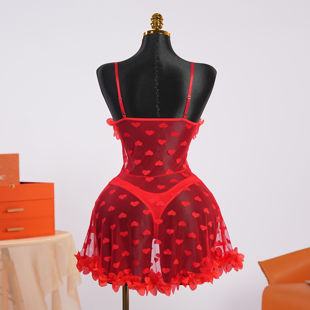 كوني عنوان الجاذبية مع هذا البيبي دول الأحمر الذي تم تصميمة ليأسر القلوب قطعة فريدة مصنوعة من قماش الشيفون الشفاف والناعم مزينة بنقشة قلوب رقيقة تعبر عن أسمى مشاعر الحب مما يجعلها الخيار الأمثل للمناسبات الخاصة التي تبقى في الذاكرة.