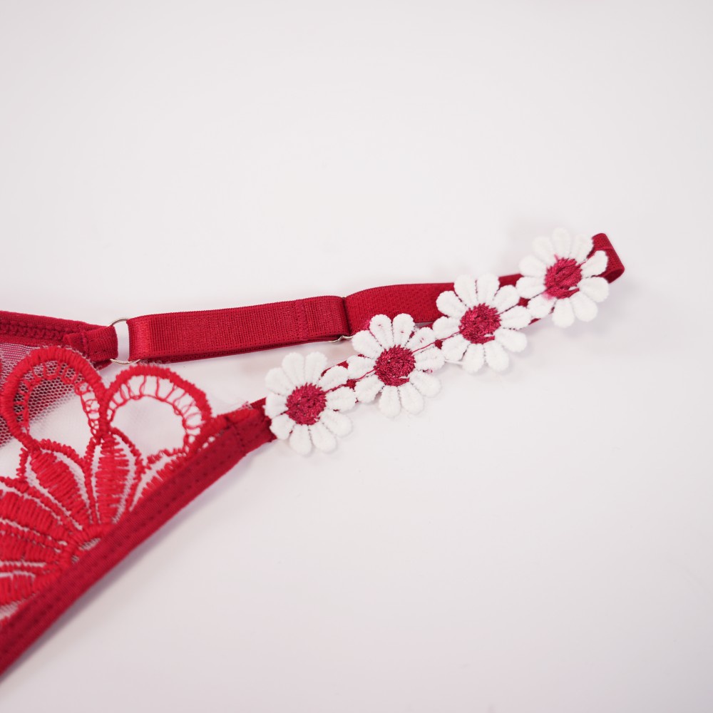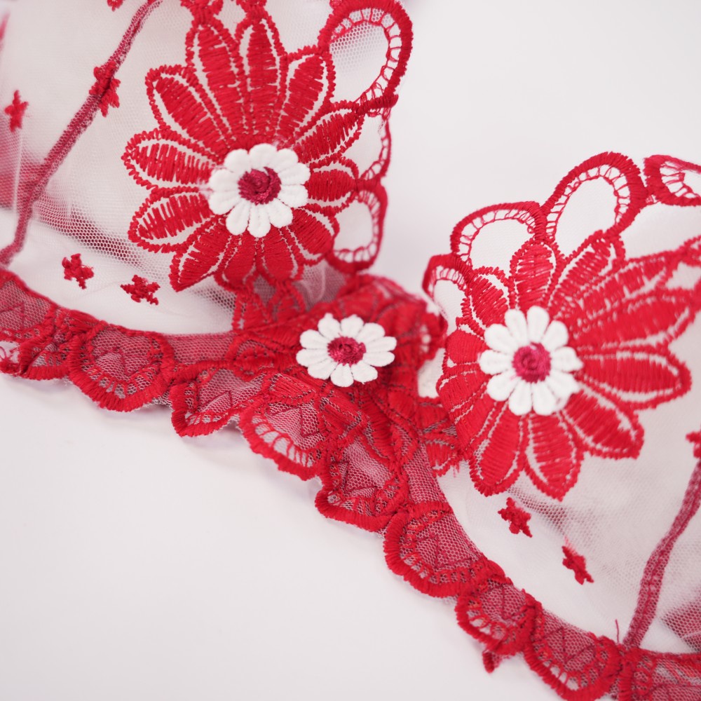Material: Soft sheer mesh with delicate floral lace embroidery.