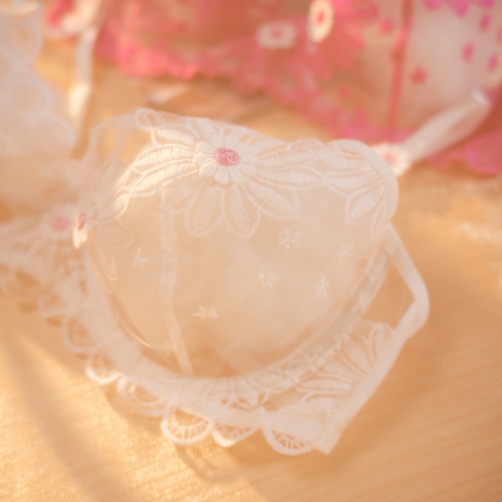 Material: Soft sheer mesh with delicate embroidered white lace.