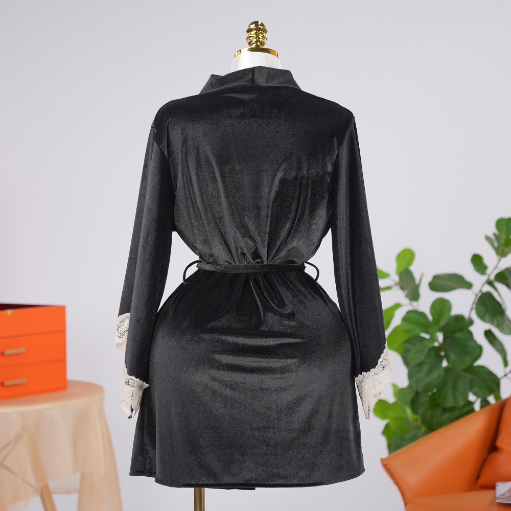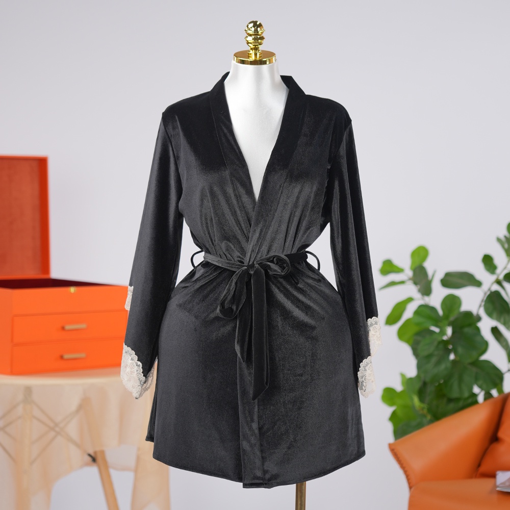 تفاصيل دانتيل أسود رائعة: تُزيّن حواف الدانتيل الأسود الرقيقة الأكمام والأكمام، مما يُضفي تباينًا رائعًا يُضفي عليها سحرًا كلاسيكيًا راقيًا.